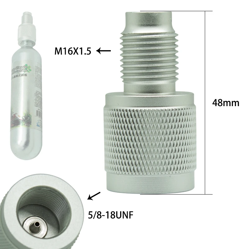 Name: Adaptador de cerveza CO2 Homebrew, convertidor estándar 3/8-24UNF o 5/8-18UNF a 88g 90g, rosca de botella de Co2 M16 * 1,5